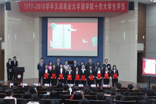 评委对德育情况(权重0.15)与现场表现(权重0.15)两项指标进行现场打分,去掉最低分与最高分后的平均分,与学生基本情况赋分(权重0.7)相加,最终确定王文静、刘佳怡、温媛媛、蒋思、张笑嫣、杨洁、聂惟聪、沈双桂、季艳秋、郭昭铭10位同学获评为2017-2018学年理学院十佳大学生,与会评委为获奖学生颁发荣誉证书。