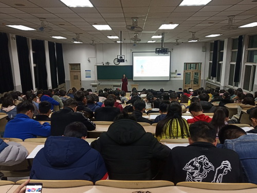 日前,理学院在阶4举行“身边榜样——优秀学生成长分享团”宣讲会第二讲。第三届“身边榜样”优秀学生成长分享团团长赵巧玉、团员毛官钰担任主讲。学院全体2018级新生参加。
