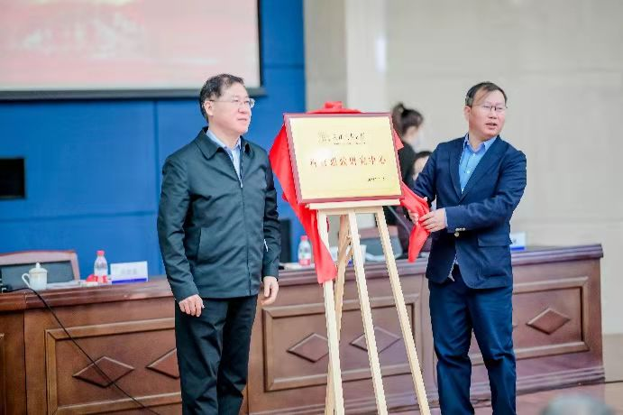 会上,卢双盈和陈冠益为我校科普思政研究中心揭牌。