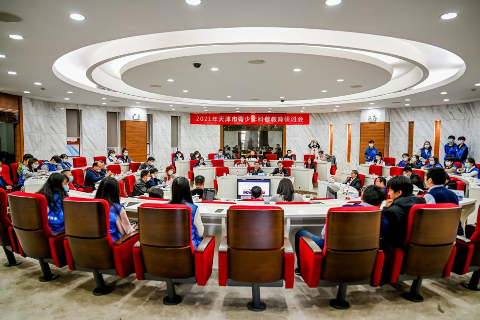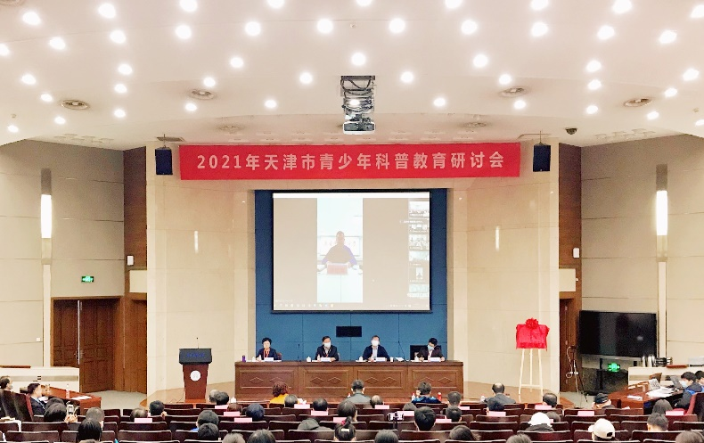 11月14日,2021年天津市青少年科普教育研讨会以线上线下相结合的方式在我校学图书馆三楼国际报告厅和二楼弘毅厅隆重召开。天津市科协副主席卢双盈、新疆维吾尔自治区党委办公厅副主任李旭辉、副校长陈冠益、天津市科技局引智育才工作处处长于学凤、天津市教委科技处副处长缪楠、天津市科技馆副馆长许献岐、北辰区科协主席段玉环、红桥区科协党组书记李健出席。来自南开大学、河北工业大学、天津师范大学、天津中德应用技术大学、天津益中学校、天津市雍阳中学、新疆喀什地区英吉沙县色提力乡中心小学、天津市实验小学、天津市和平区第十一幼儿园和华为滨海基地等多位专家、学者以及百余名师生参加本次会议。