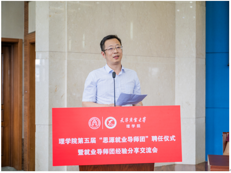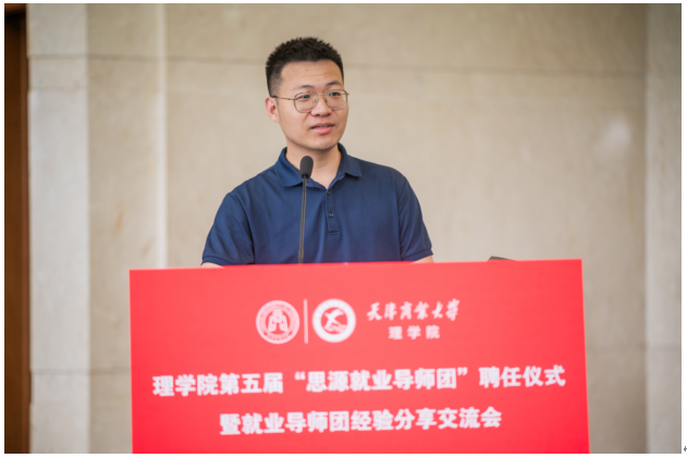 6月11日,理学院在图书馆国际报告厅举办“离校不离心·犹记天商情”第五届“思源”就业导师团聘任仪式暨经验分享交流会。理学院2016届优秀校友、天津财经大学统计学院硕士生导师熊宇航作为校友代表应邀参加。理学院领导班子成员、系室主任、教研室主任、辅导员、以及学生代表共200余人参加。