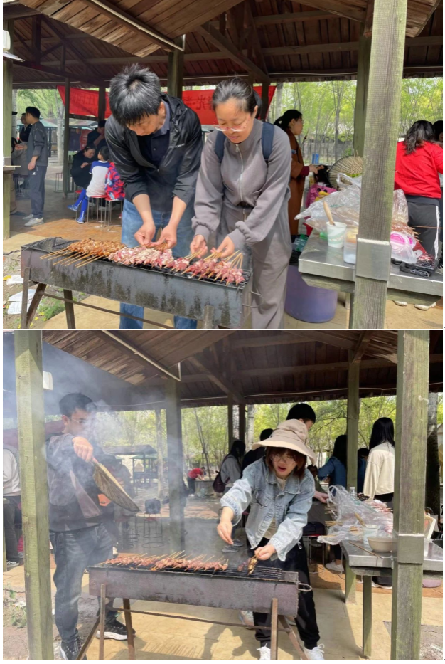 教职工们在庄园内进行了一个多小时的自由散步后,一场别开生面的烧烤盛宴拉开了活动的序幕。教职工们纷纷动手,有的负责烤肉,有的负责准备蔬菜,还有的忙着调制酱料。大家分工合作,忙碌而有序。不久,一阵阵香气便弥漫开来,让人垂涎欲滴。